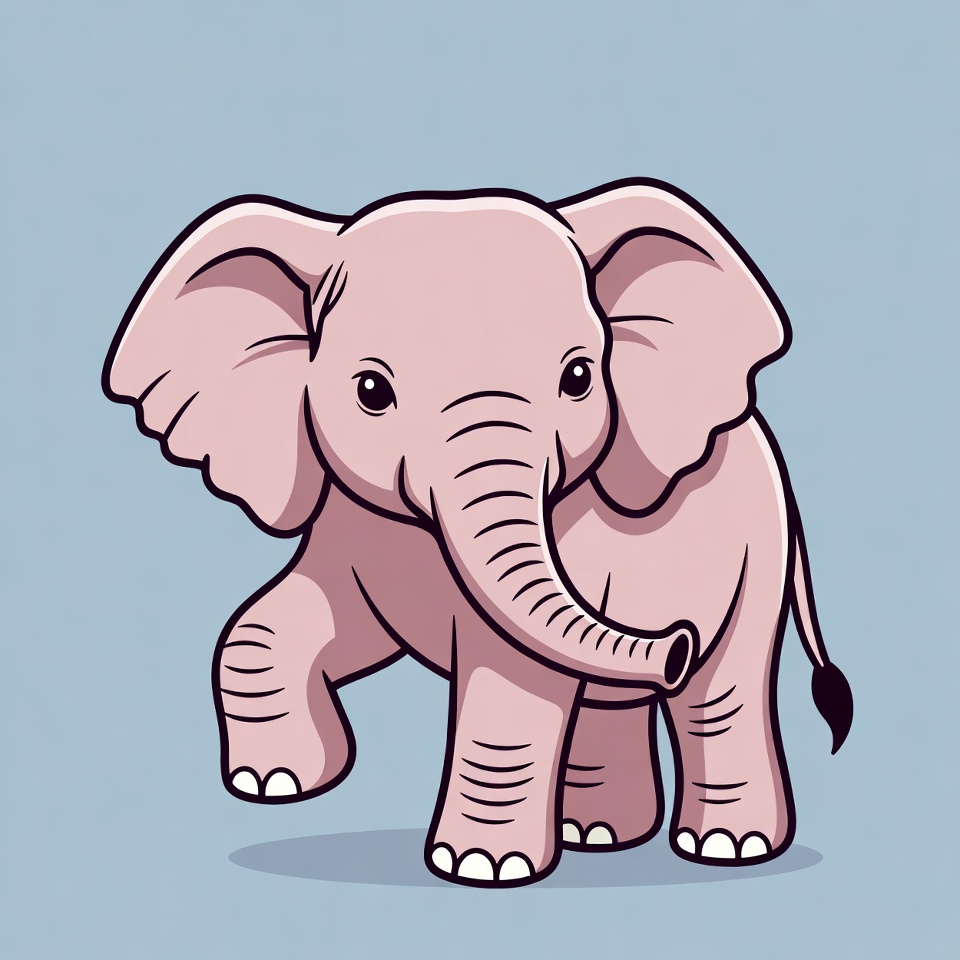 animal, artwork, blue, cartoon, character, cute, design, drawing, ears, elephant, illustration, lines, look, nature, playful, stand, tail, trunk, wildlife, young