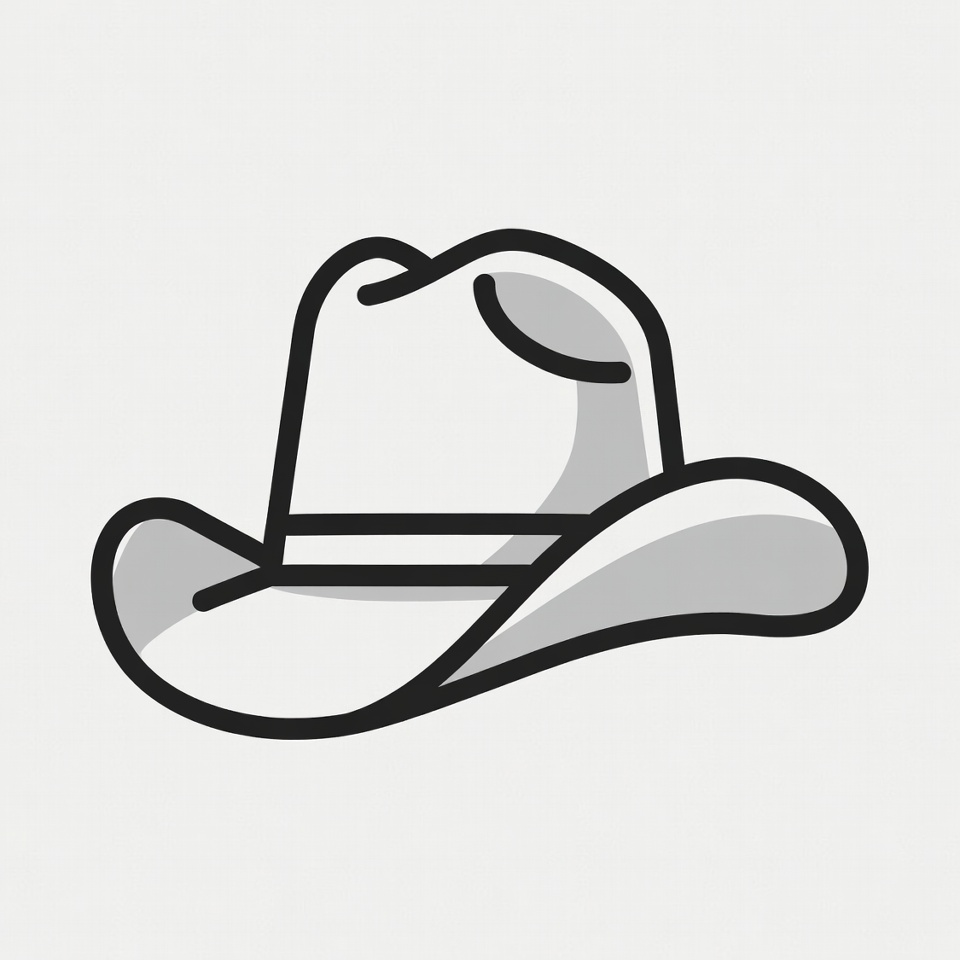 casual wear, character accessory, clothing item, country style, cowboy hat, design, dress up, fashion accessory, flat design, graphic design, headgear, headwear, illustration, outdoor gear, simple design, summer fashion, traditional hat, trendy accessory, western style, white hat