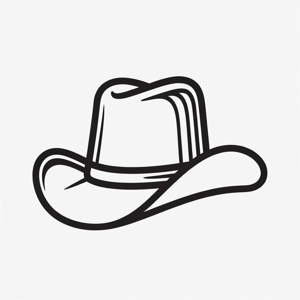 A simple outline of a cowboy hat is shown. This design focuses on the shape and structure of the hat without any color.