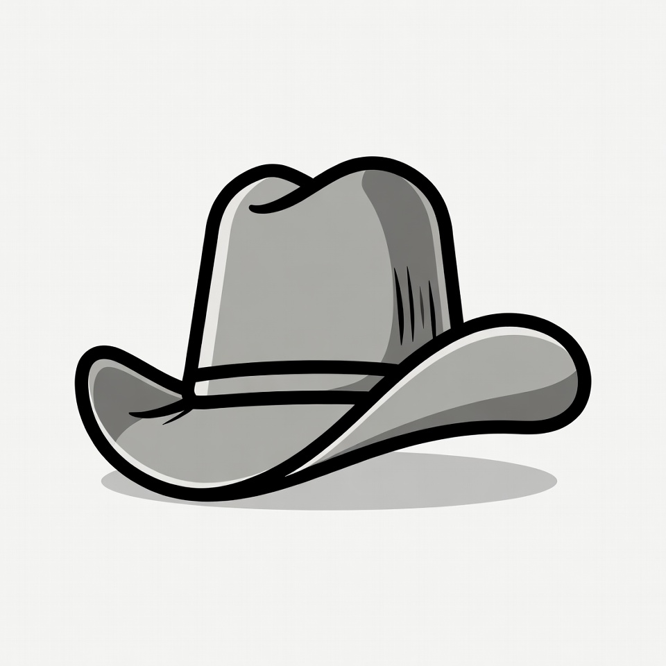 accessory, art, casual wear, cattle, country style, cowboy culture, cowboy hat, fashion, flat surface, graphic design, gray hat, headwear, illustration, neutral background, outdoor gear, ranch, silhouette, simple design, style, western wear