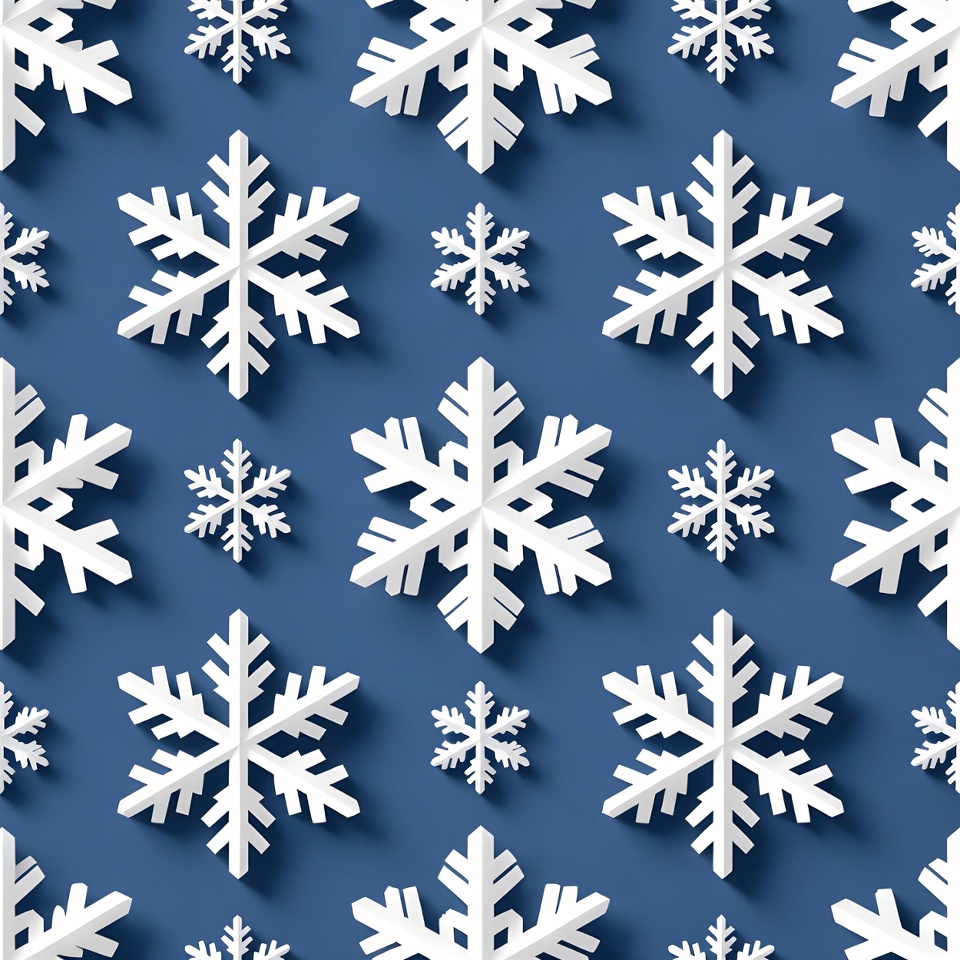Snowflakes of various sizes are shown on a blue background, creating a winter-themed pattern that emphasizes cold weather.