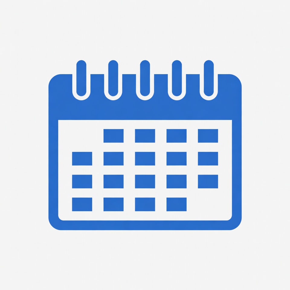 A calendar icon with a blue background shows the days of the month in a grid format with a simple design.