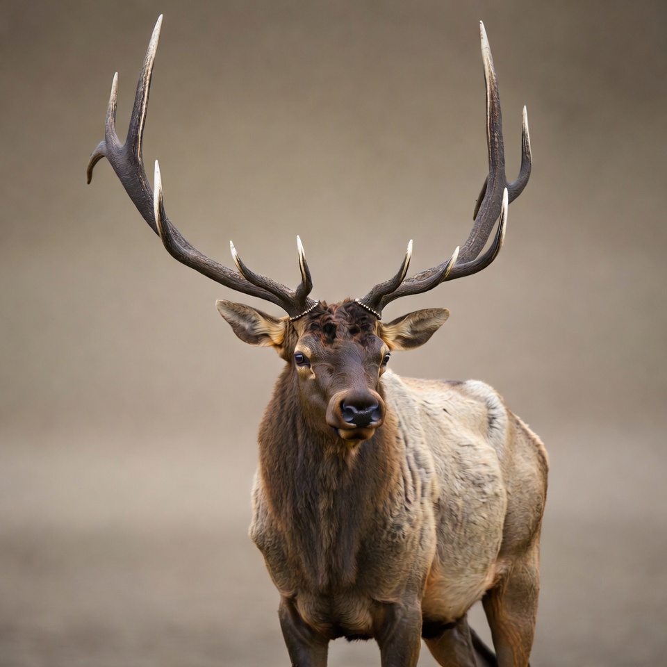 A wild elk stands prominently in its natural habitat, showcasing its large antlers and strong presence during daytime.