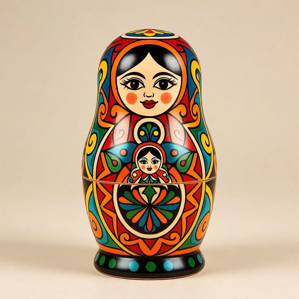 art history, art pieces, colorful designs, craftsmanship, cultural art, decorative items, detailed artwork, family theme, folk art, hand-painted, heritage, home decor, matryoshka, nesting dolls, playful design, russian dolls, toy collection, traditional crafts, unique patterns, wooden toys