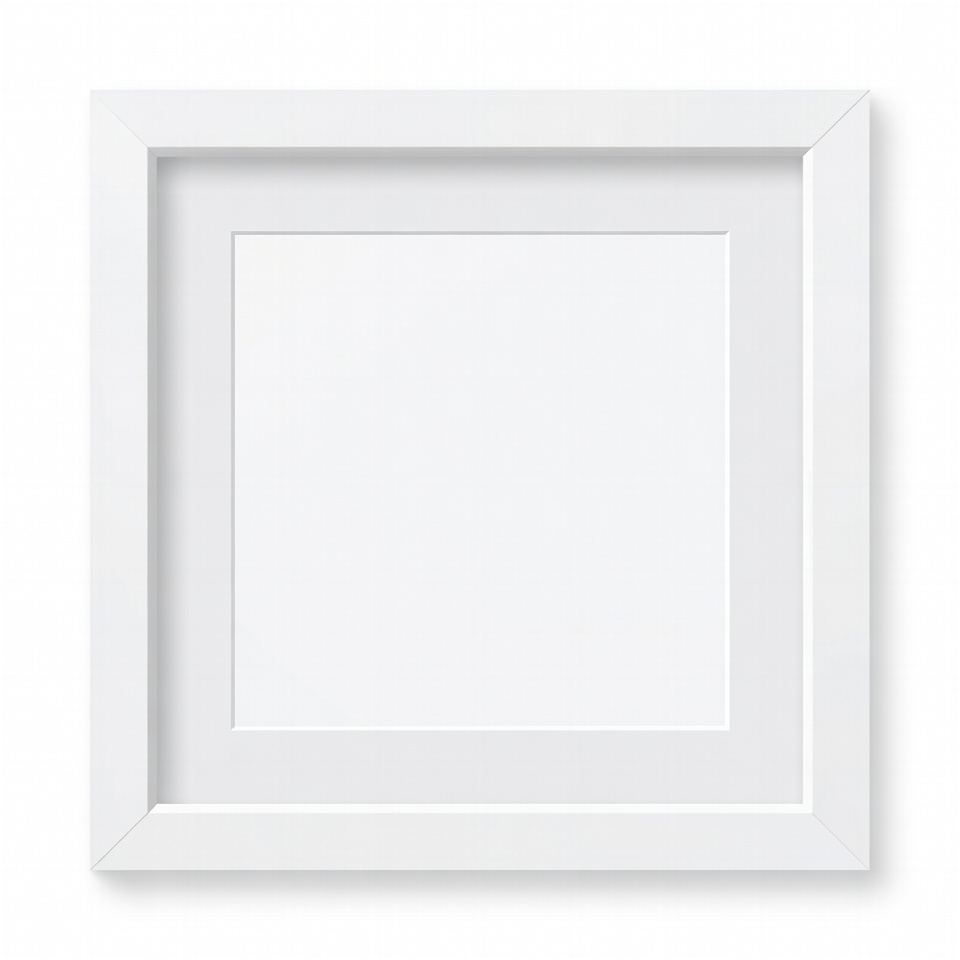 A white frame sits empty, ready for an artwork or picture in a simple indoor setting.