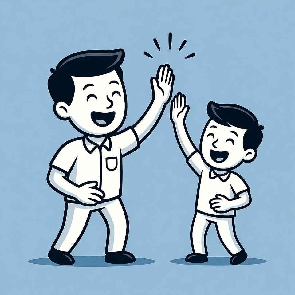 bonding, celebration, child, connection, encouragement, family, father, fun, gesture, happiness, high five, interaction, joy, parent, playing, smiling, son, support, teamwork, togetherness