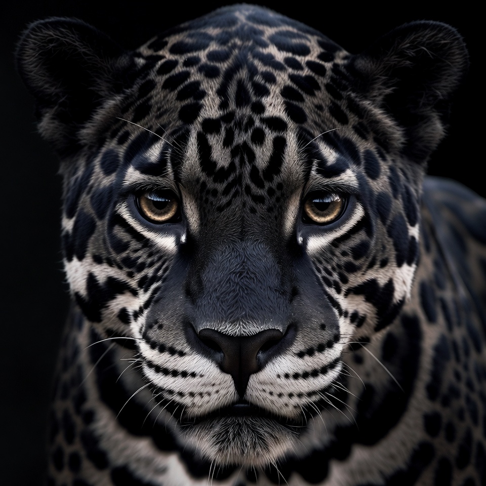 animal, animal portrait, big cat, black background, carnivore, close-up, eyes, face, fierce, focus, forest, fur patterns, gaze, habitat, jaguar, nature, predator, strength, wild, wildlife