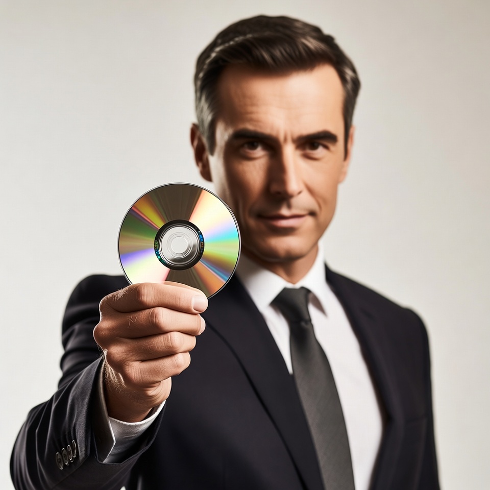 Man holding a cd in a suit