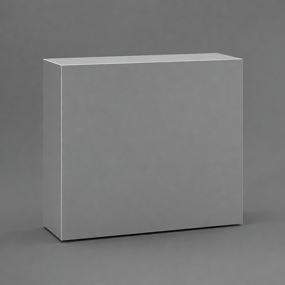 A gray box sits on a gray background. It is a plain, solid shape and has no visible markings or text.