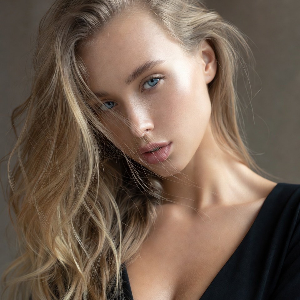 beauty, brunette, casual pose, close up, confidence, dark outfit, elegance, facial expression, gaze, hairstyle, lighting, long hair, model, natural light, portrait, serenity, studio, style, woman, youth