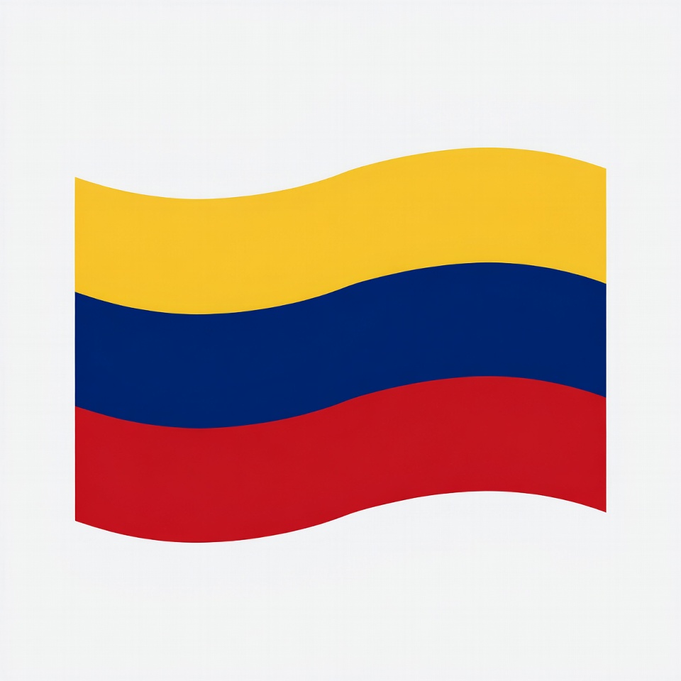 The flag of Colombia features yellow, blue, and red stripes flowing smoothly. It represents the country's identity and pride.