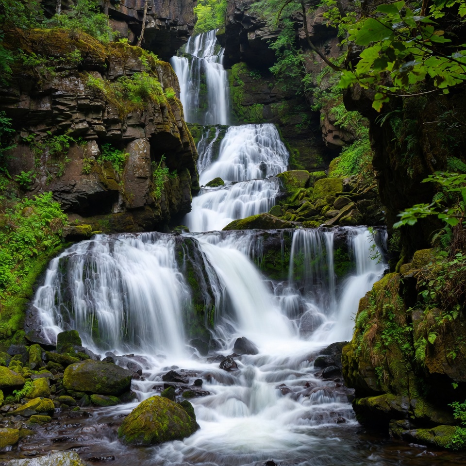 Waterfall cascading through rocks in a forest