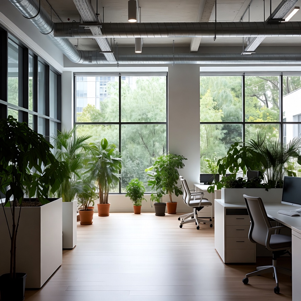 Modern office with green plants