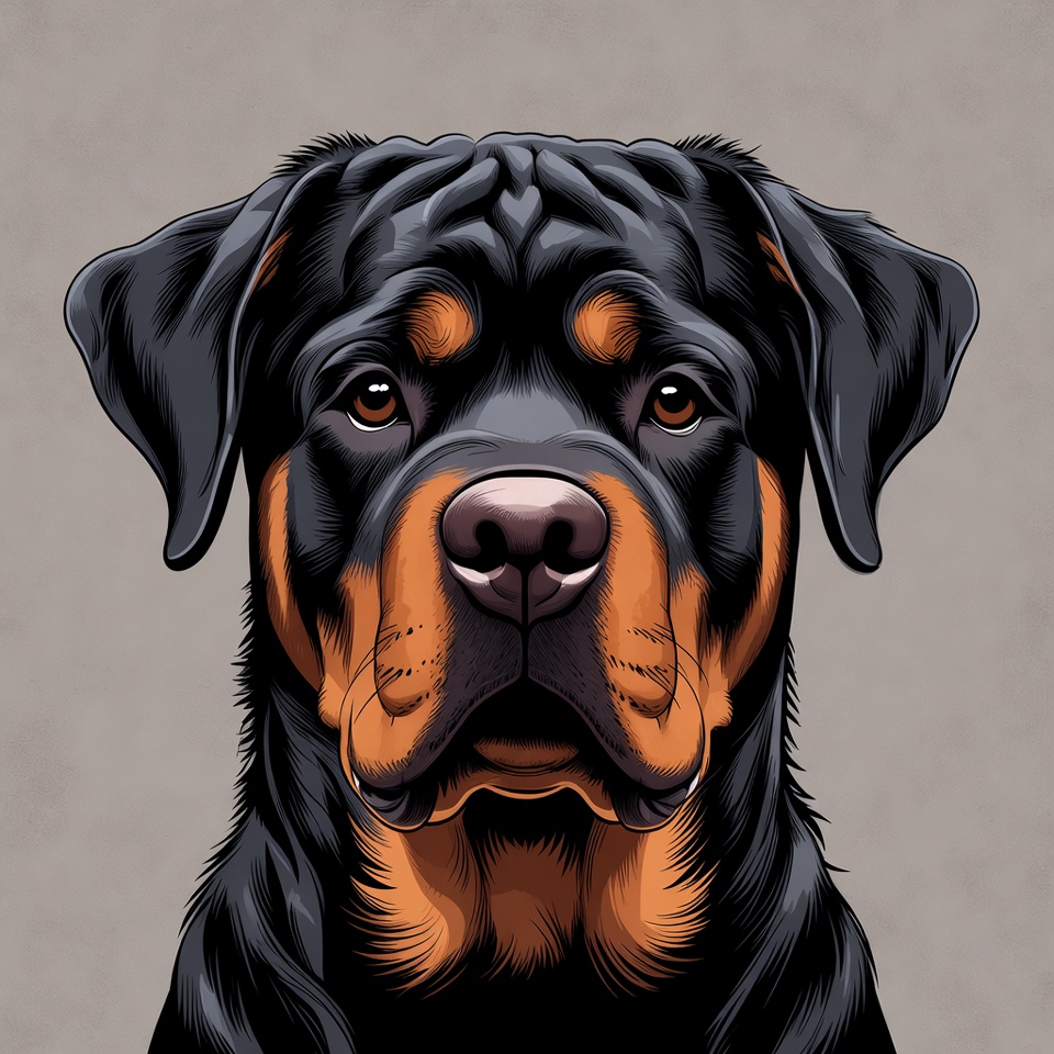 Rottweiler portrait with plain background