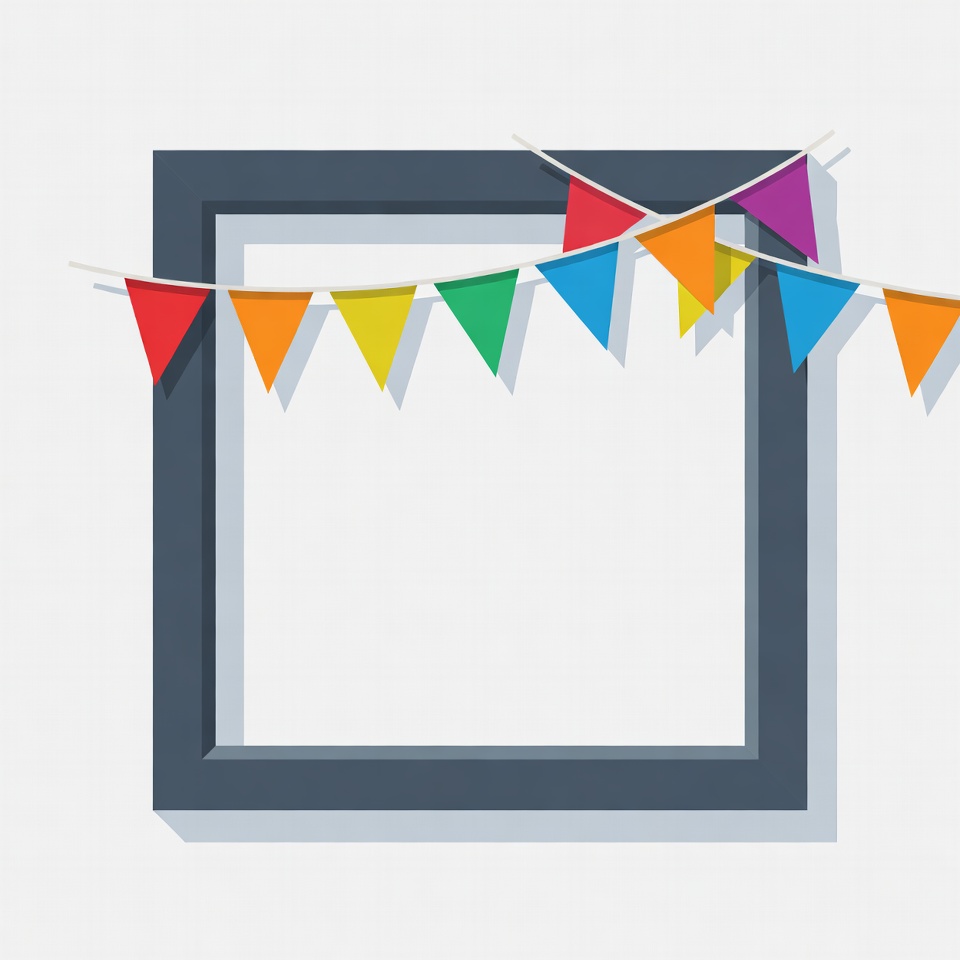 Colorful flags above empty frame