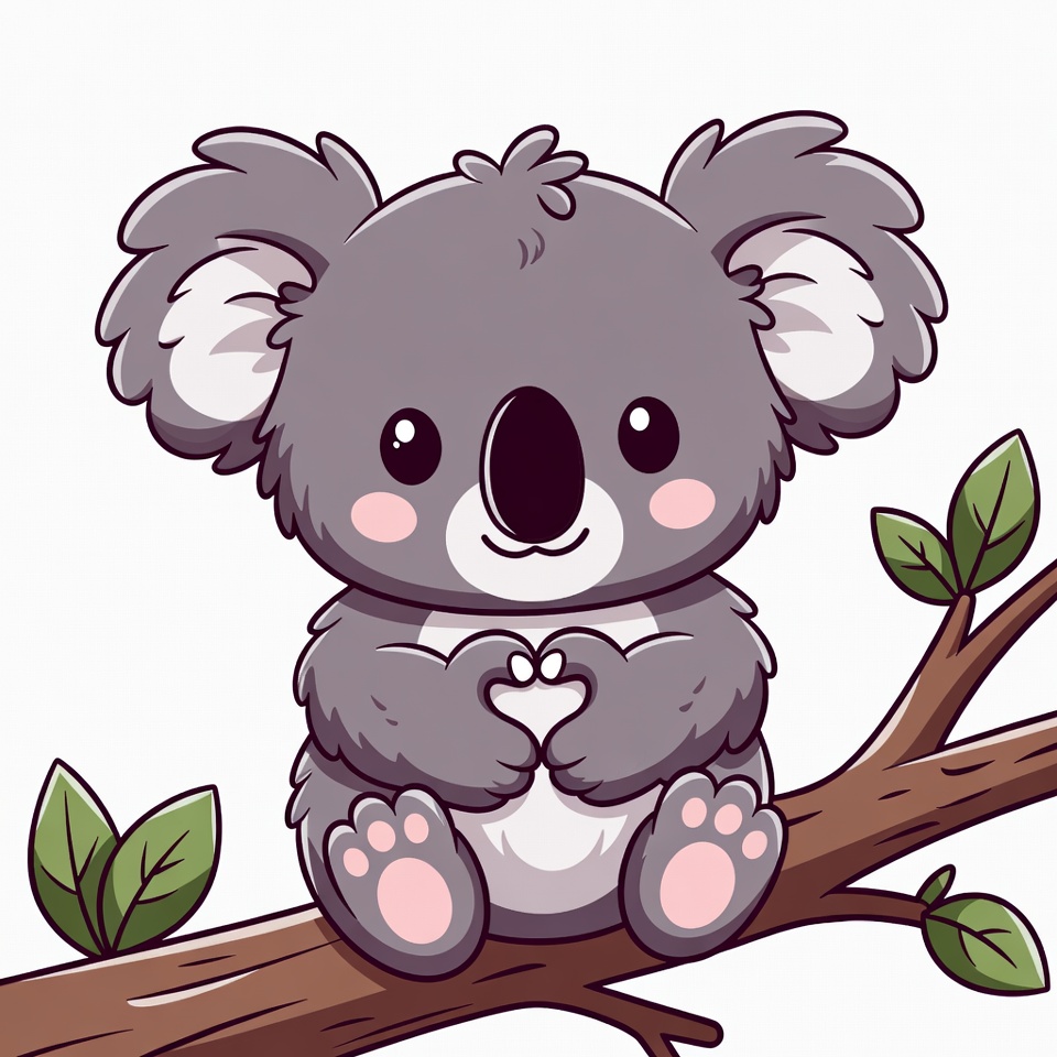 Australian, animal, background, branch, character, cute, forest, furry, gray, habitat, illustration, koala, leaves, marsupial, nature, outdoor, paws, sitting, tree, wildlife