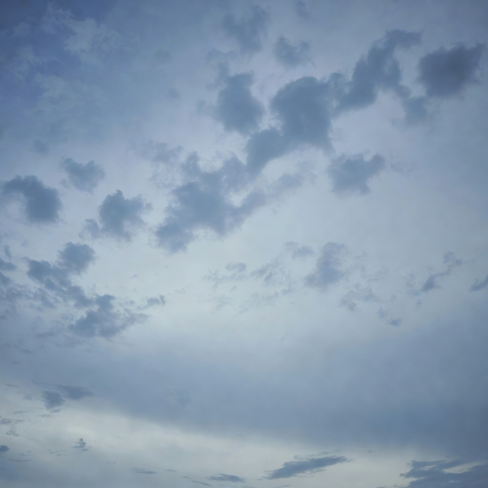 Clouds fill the sky in various shapes and shades during the late afternoon. This captures a moment before sunset as light changes.