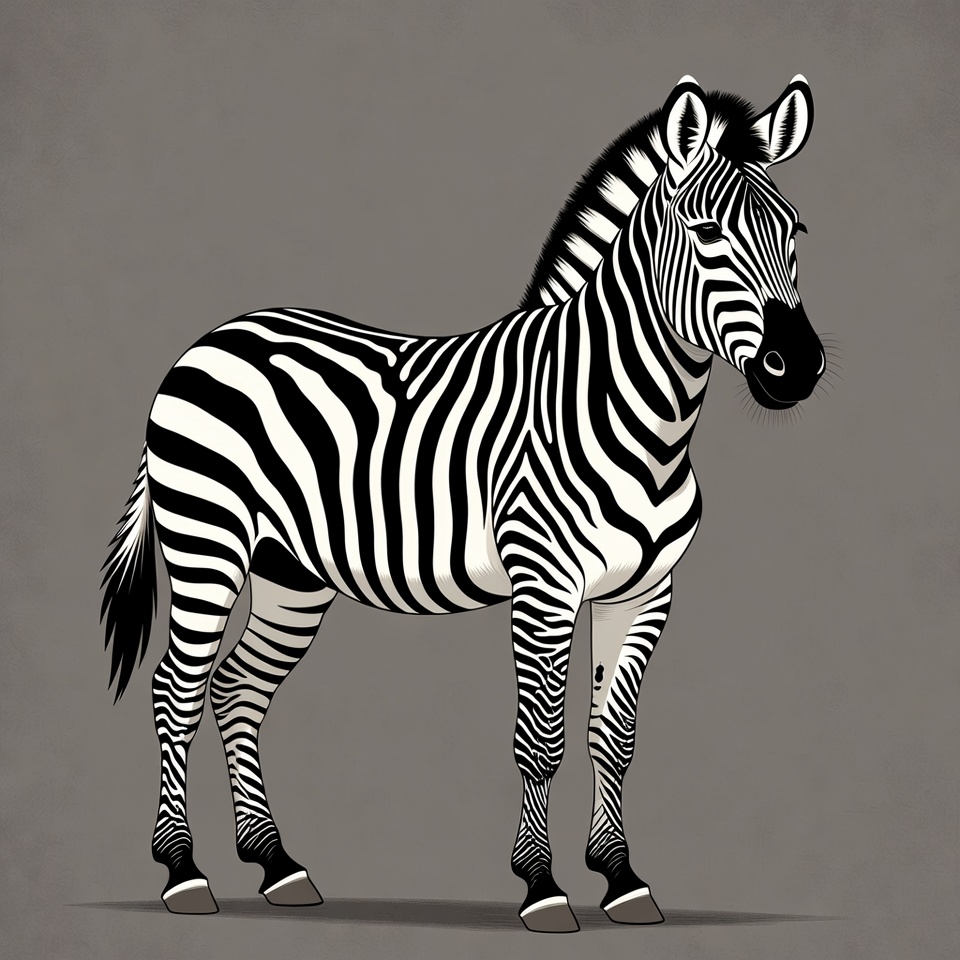 African animal, animal, drawing, equine, fauna, flat design, graphic, gray background, herbivore, hoofed animal, illustration, mammal, nature, profile view, safari, standing, stripes, wildlife, zebra, zoo
