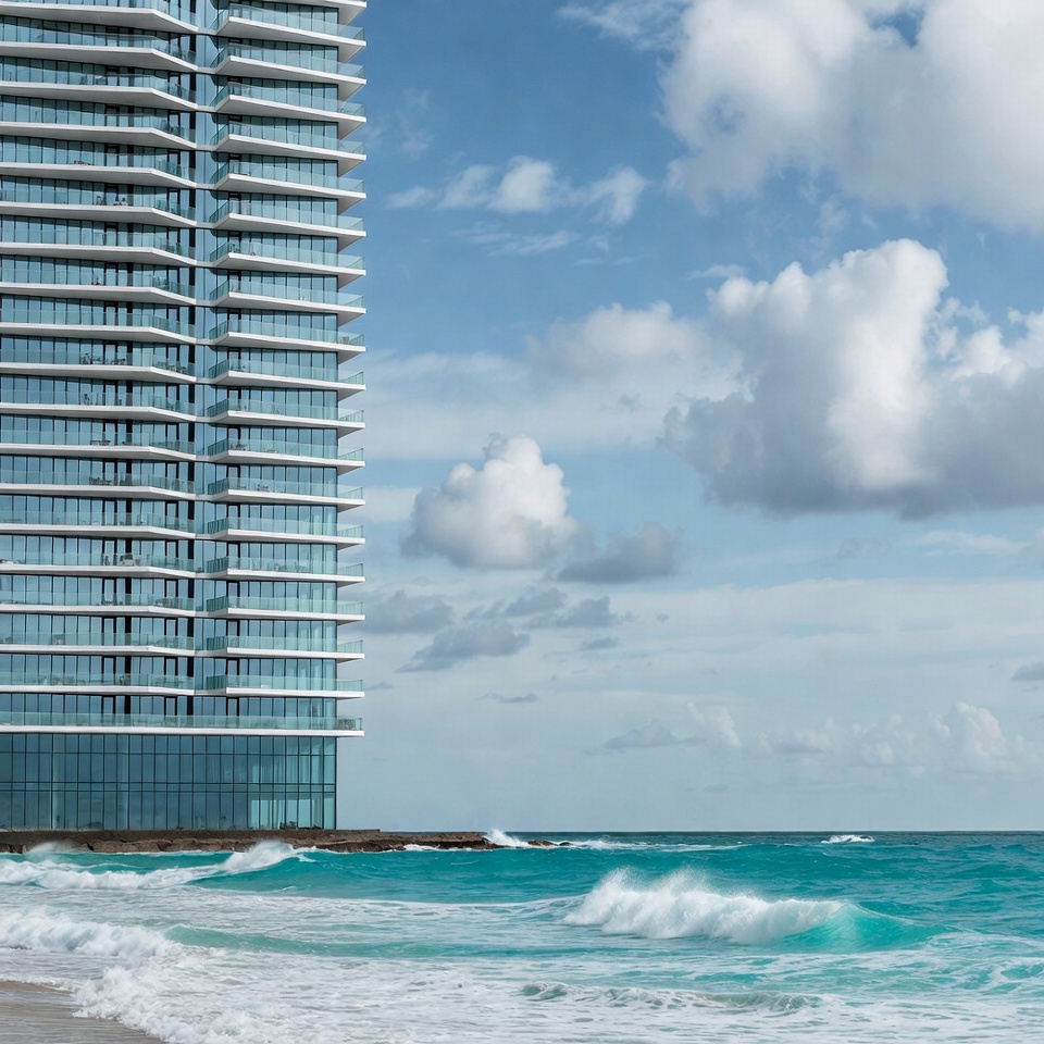 Ocean waves near tall building