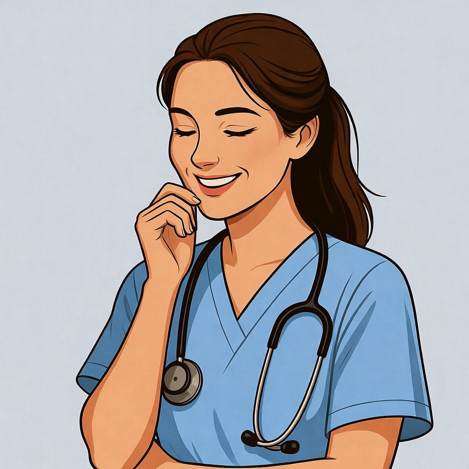 Nurse smiling while thinking