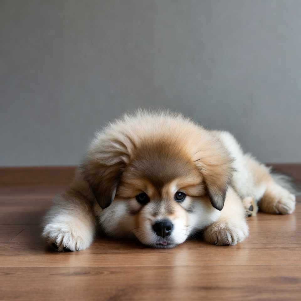 Puppy resting on wooden floor