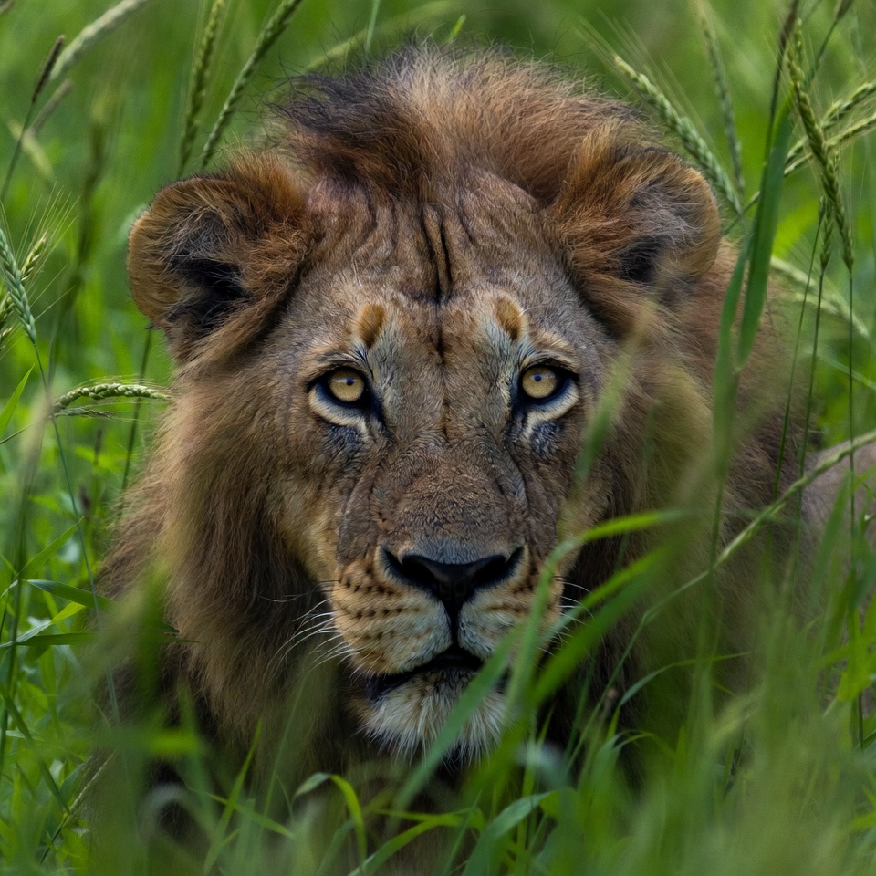 Africa, animal, ecosystem, feline, gaze, grass, habitat, hunting, lion, mammal, natural, nature, outdoor, predator, safari, strength, survival, tall grass, wilderness, wildlife