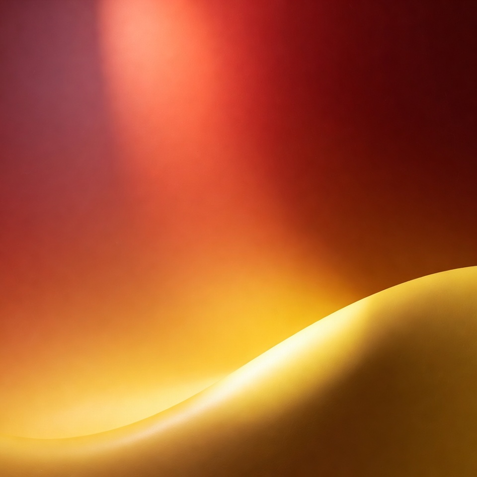 A blend of red and yellow colors forms a smooth wave shape. Light creates a soft gradient effect on the surface.