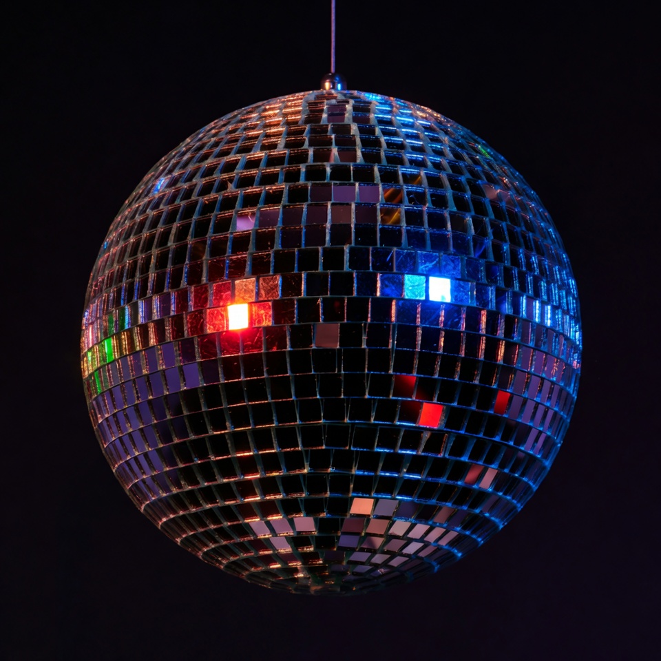 ambiance, celebration, colors, dance, dark, decoration, disco ball, entertainment, event, festive, gathering, hanging, lights, music, nightlife, party, reflection, shine, sparkling, venue
