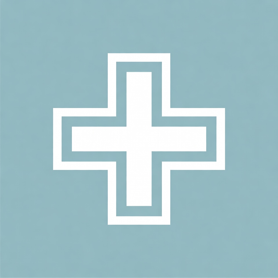 A simple design of a white medical cross surrounded by a blue background. The symbol is central and stands out clearly.