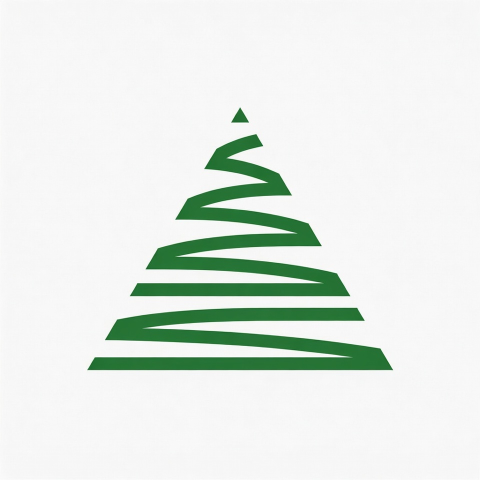 Green tree shape with curved lines stands on a plain background. It is used for decoration during festive seasons and celebrations.