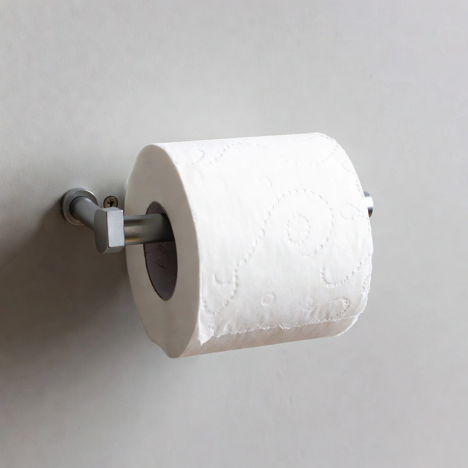 bathroom, bathroom decor, clean, daily use, design, domestic, essential, fixture, gray wall, household item, hygiene, interior, new, paper, restroom, roll, sanitation, storage, toilet paper, wall holder