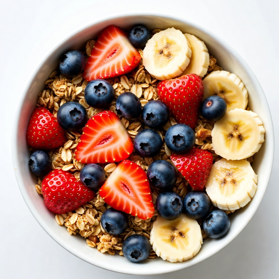 banana, blueberries, bowl, breakfast, cuisine, delicious, diet, eating, food, fruit, grains, healthy, kitchen, meal, morning, nutrition, oats, snack, strawberries, sweet