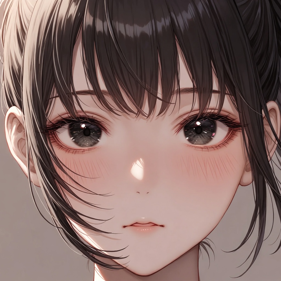 anime style, art, beauty, calm expression, character design, close-up, dark hair, drawing, emotion, face, features, imagination, individuality, large eyes, neutral background, person, portrait, simplicity, style, youth