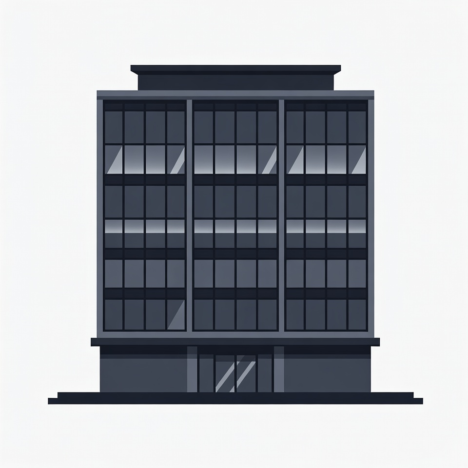 A tall building stands in an urban location with multiple glass windows. The structure has a flat roof and a simple entrance.