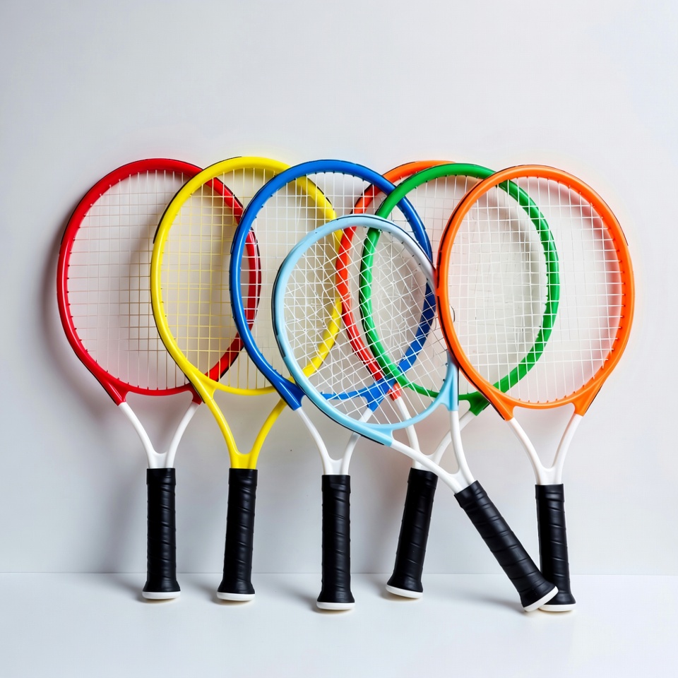 Tennis rackets in various colors