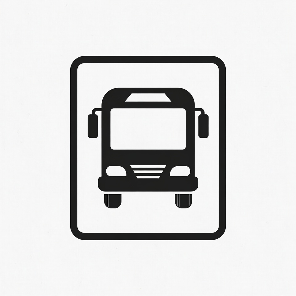 Sign shows a bus symbol in black and white. It indicates a bus stop where passengers can catch public transport.
