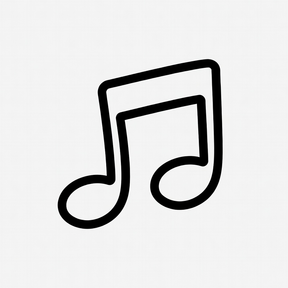Music note symbol is shown in black line art style against a plain background. The note is simple and clear, highlighting the shape.