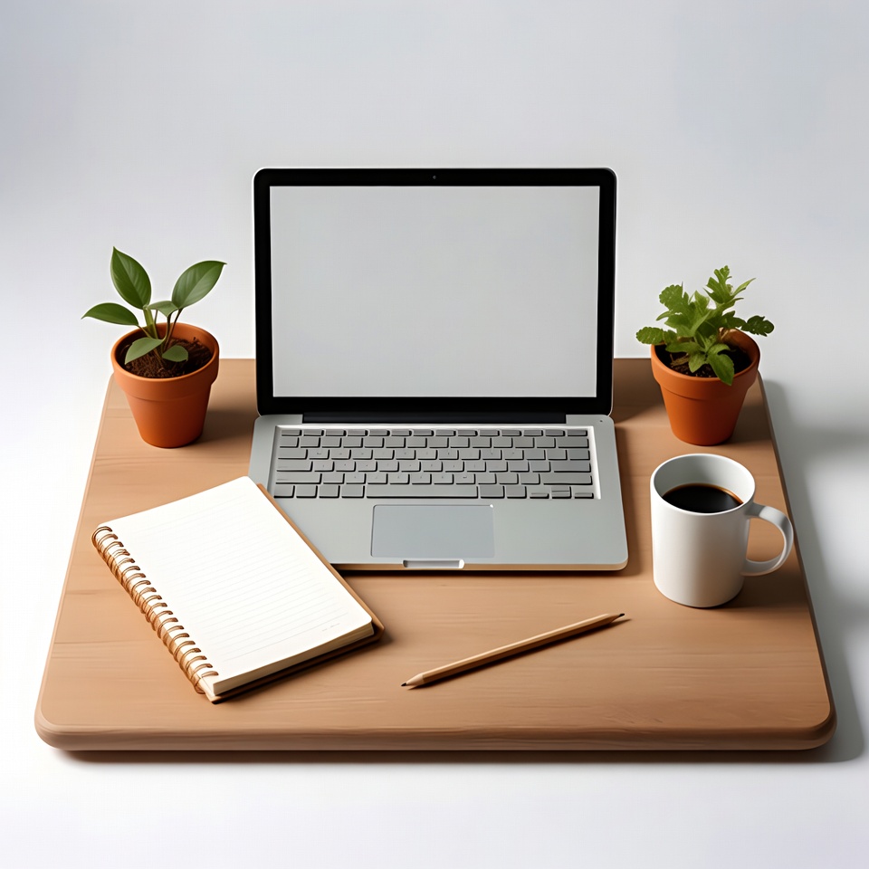 coffee, desk, equipment, home office, indoor gardening, laptop, minimalism, notebook, pencil, plants, pots, productivity, relaxation, stationery, study, technology, wood, work, workspace, writing