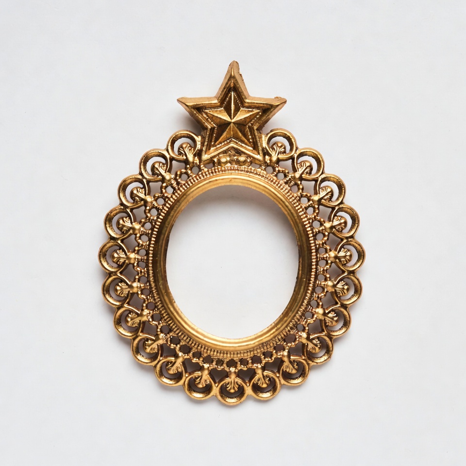 accessory, art, circular shape, craftsmanship, decorative piece, detailed work, fashion accessory, gift idea, gold color, golden pendant, handmade, jewelry, lace pattern, luxury, metal design, ornament, solid metal, star design, unique style, vintage