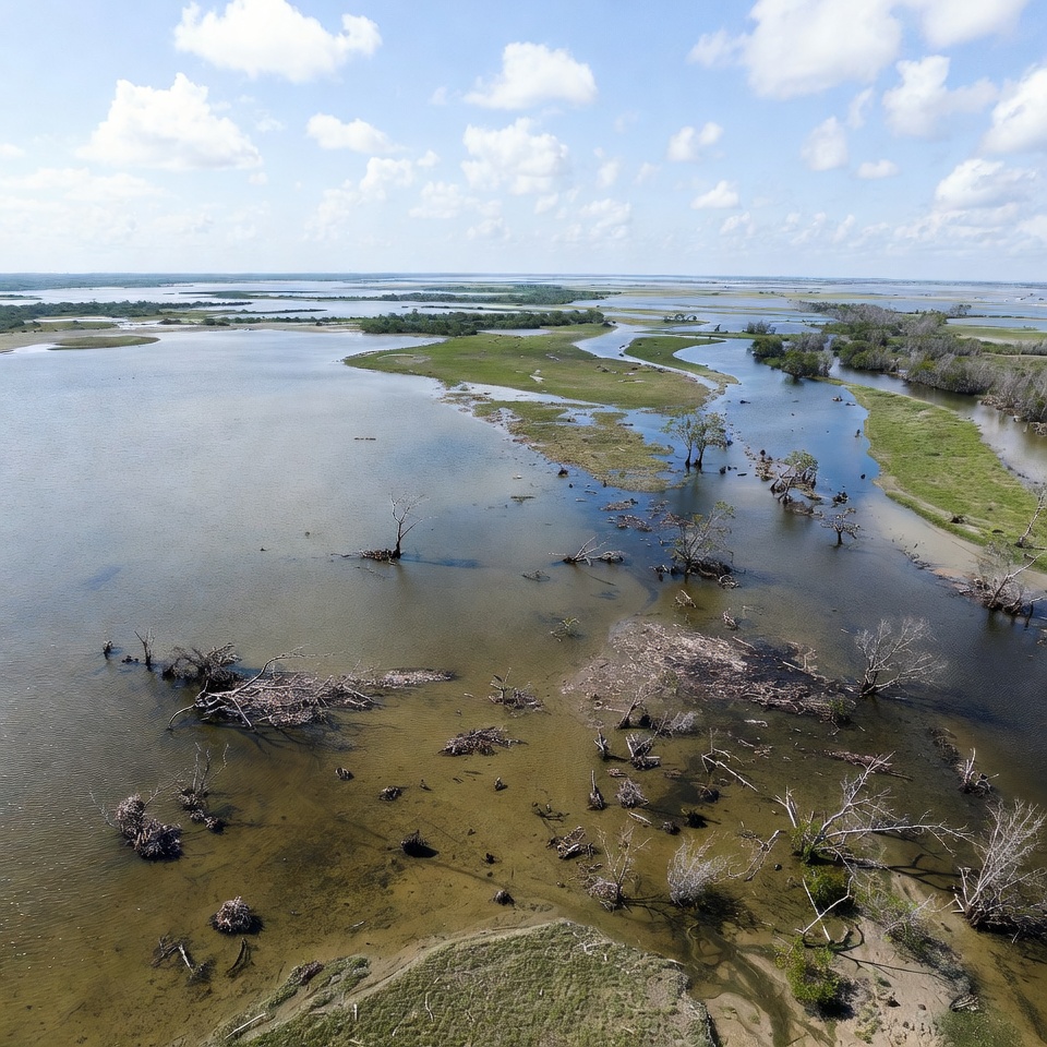 Wetland scenery showing water and land
