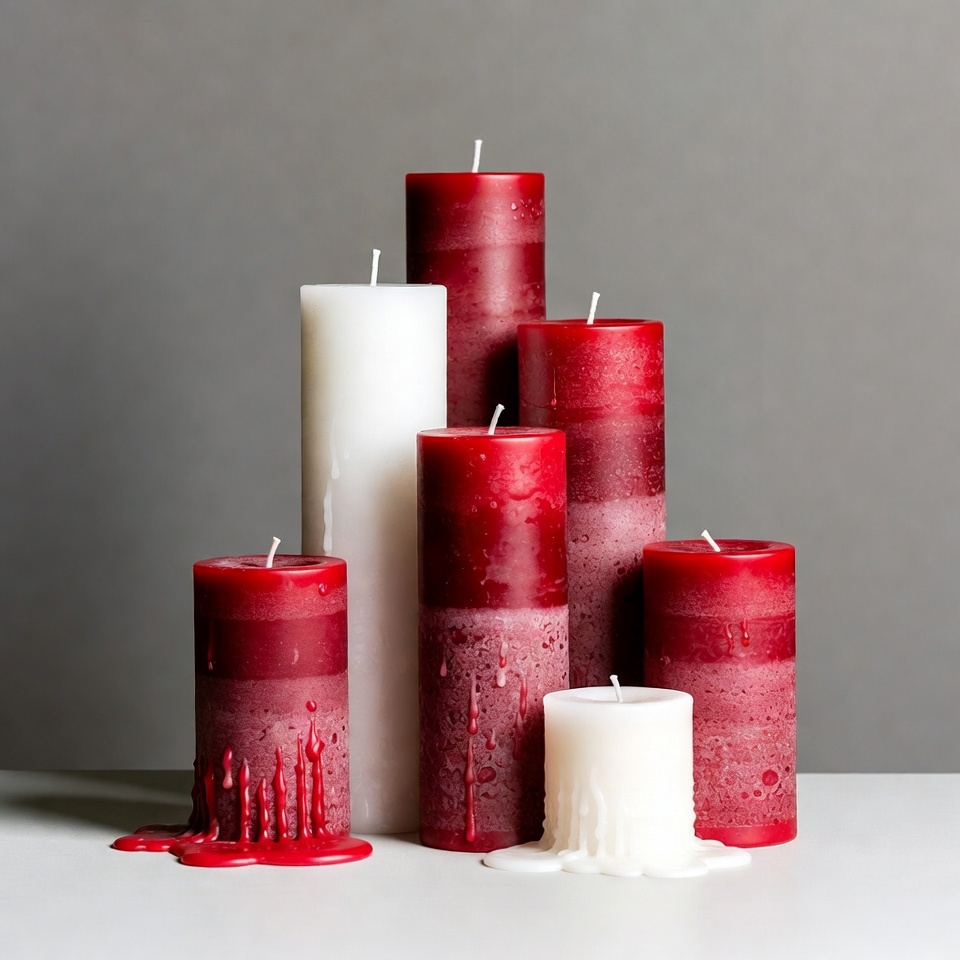 candle display, candles, celebration, cozy atmosphere, decor items, event decor, festive, home decor, interior design, lighting, melting wax, party supplies, red candles, scented candles, soft light, soothing light, table arrangement, warm ambiance, wax, white candles