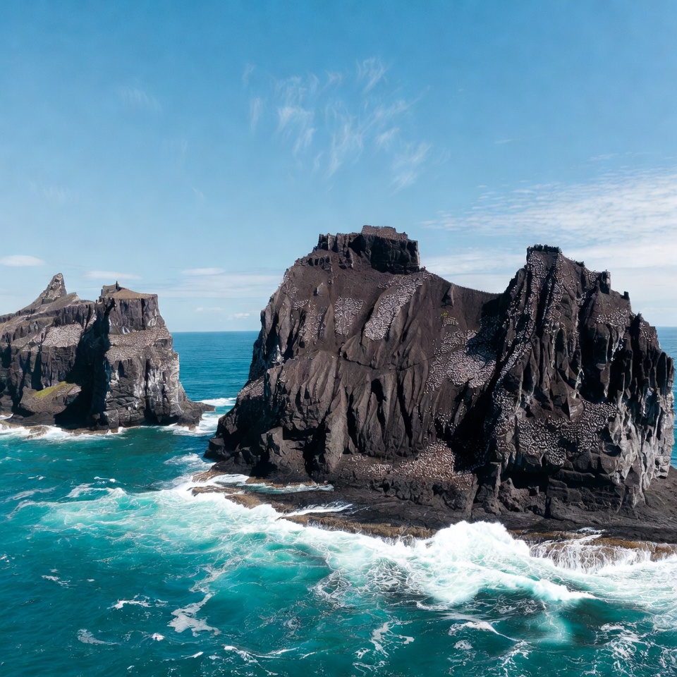 blue, cliffs, coast, island, landscape, nature, ocean, outdoor, peak, rocks, rugged, scenery, sea, shore, sky, strong, summer, vacation, water, waves
