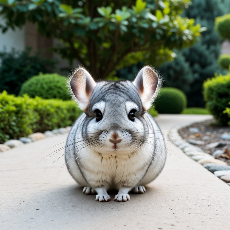 Chinchilla in garden path