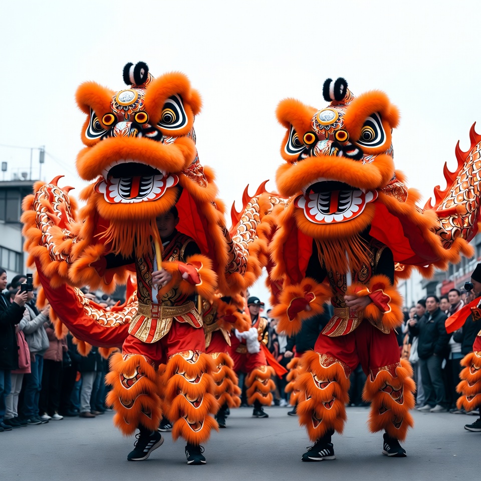 Asian heritage, activity, celebration, cheering, colorful, community, costumes, crowd, culture, dance, entertainment, event, festival, festival day, lion dance, music, outdoor, performers, street, tradition