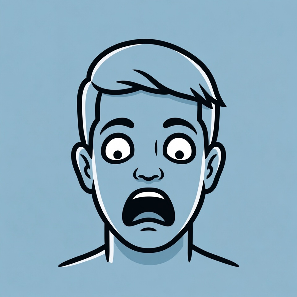 art, blue background, boy, cartoon, design, emotion, expression, eyes, face, features, hair, illustration, mouth, reaction, shocked, startled, surprise, surprised, worried, youth