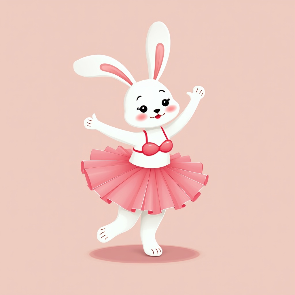 animal, art, ballet, bunny, cartoon, character, cheer, children, colorful, costume, creativity, cute, dance, fun, illustration, joy, performer, pink skirt, playful, rabbit
