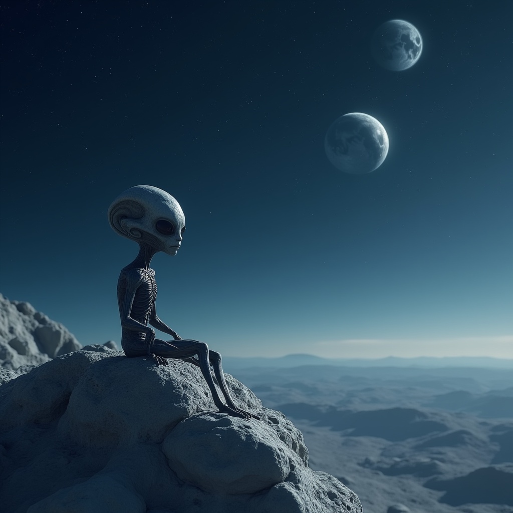 Alien sitting on moon rock