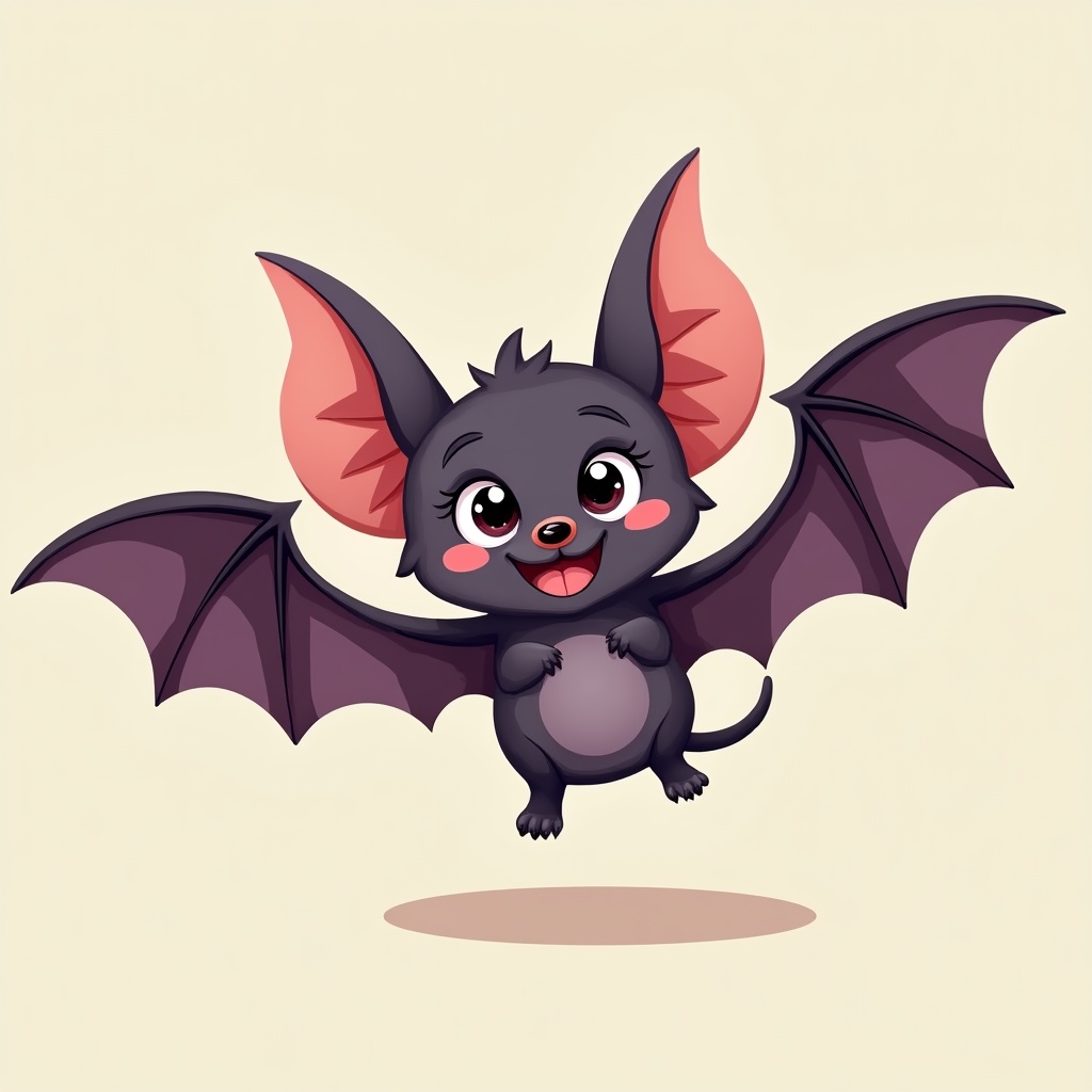 A small bat character is flying happily with its wings spread wide. The bat has large ears and a cheerful expression, making it look playful.