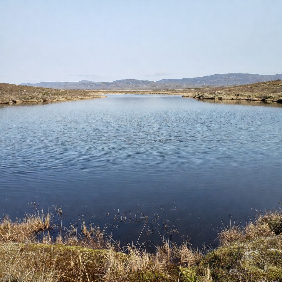 Calm water body in open landscape