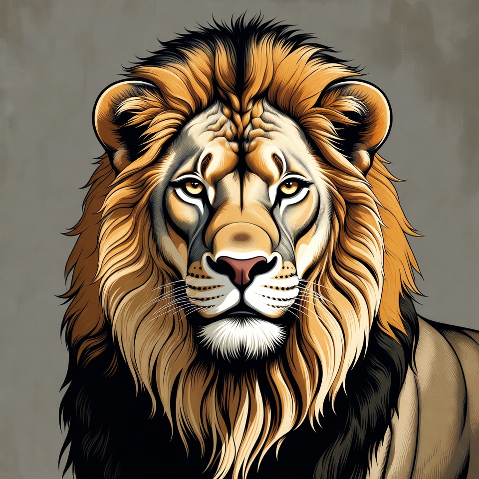 animal, art, bold, color, design, detail, drawing, facial features, head, illustration, king, lines, lion, mane, nature, portrait, predator, strength, wild, wildlife
